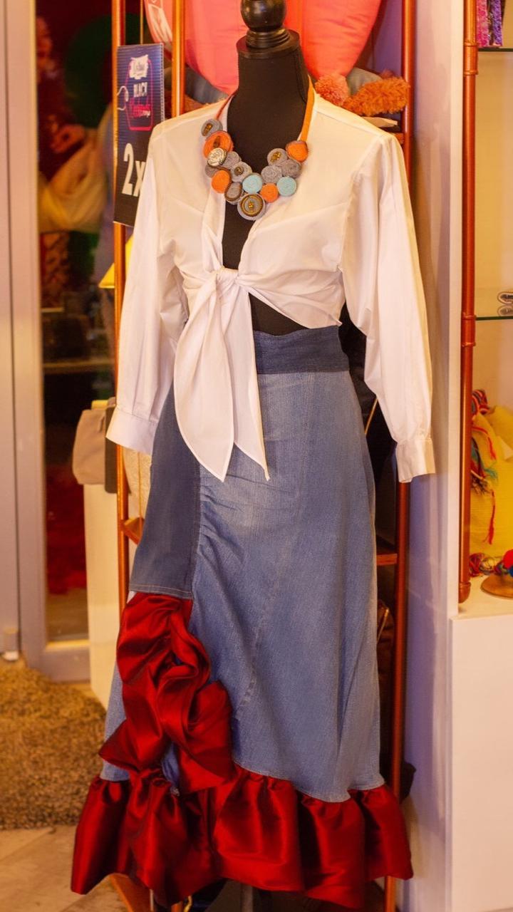 Los diseños tienen mayormente como materia prima, telas de jeans reutilizadas para crear atractivas piezas.