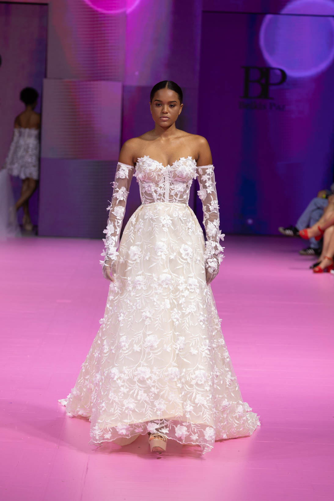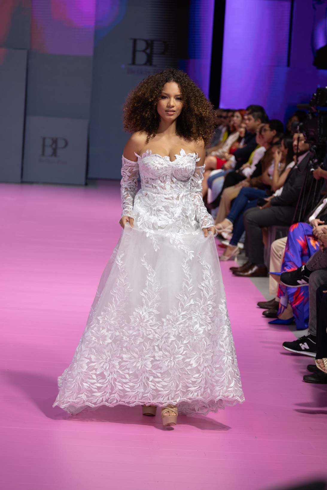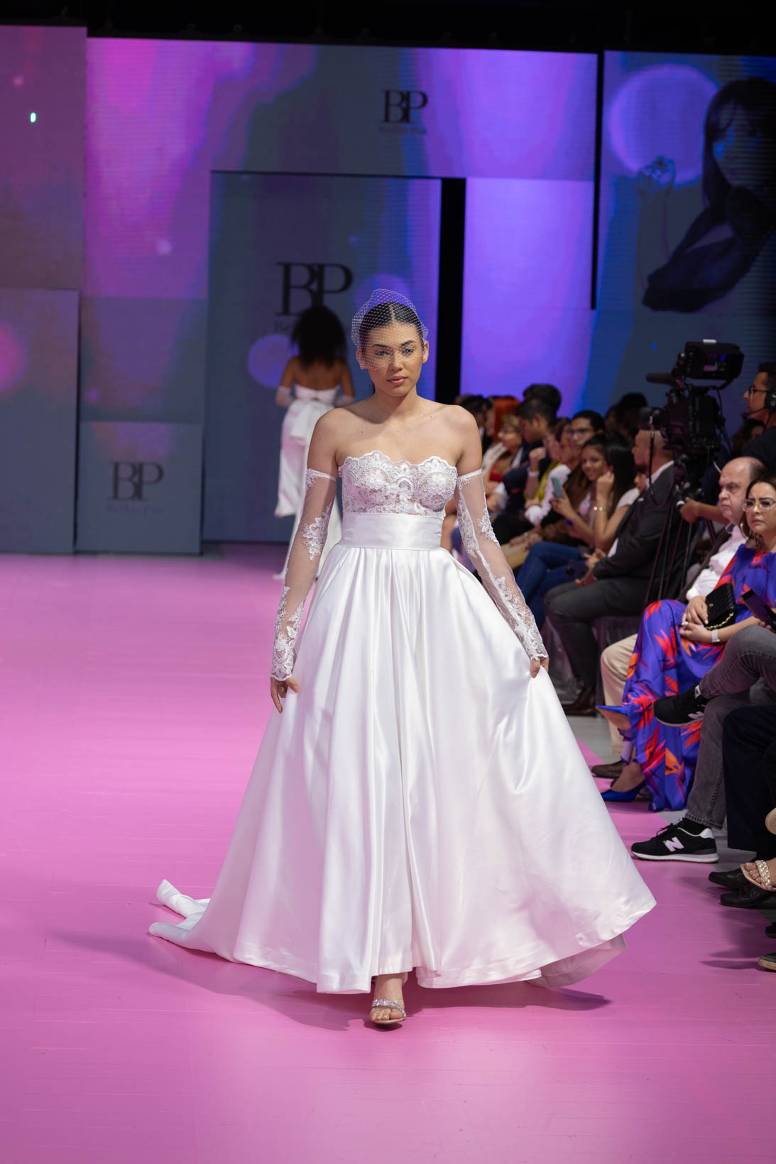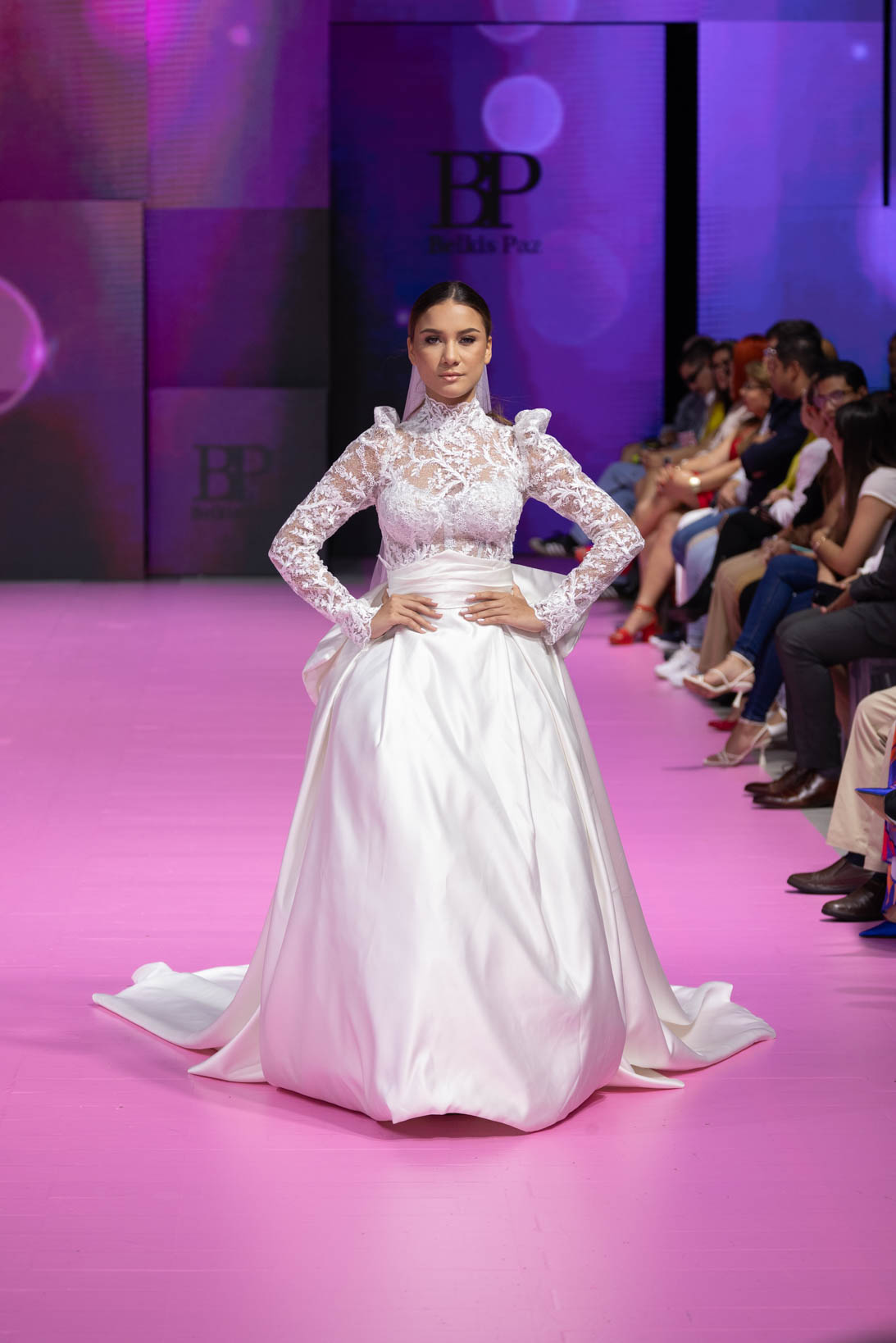 También de Honduras, con la colección “Antonella”, Belkis Paz, abrió el tercer bloque de pasarela, blancos perfectos e impecables para novias fueron apreciados y añorados por muchas.
