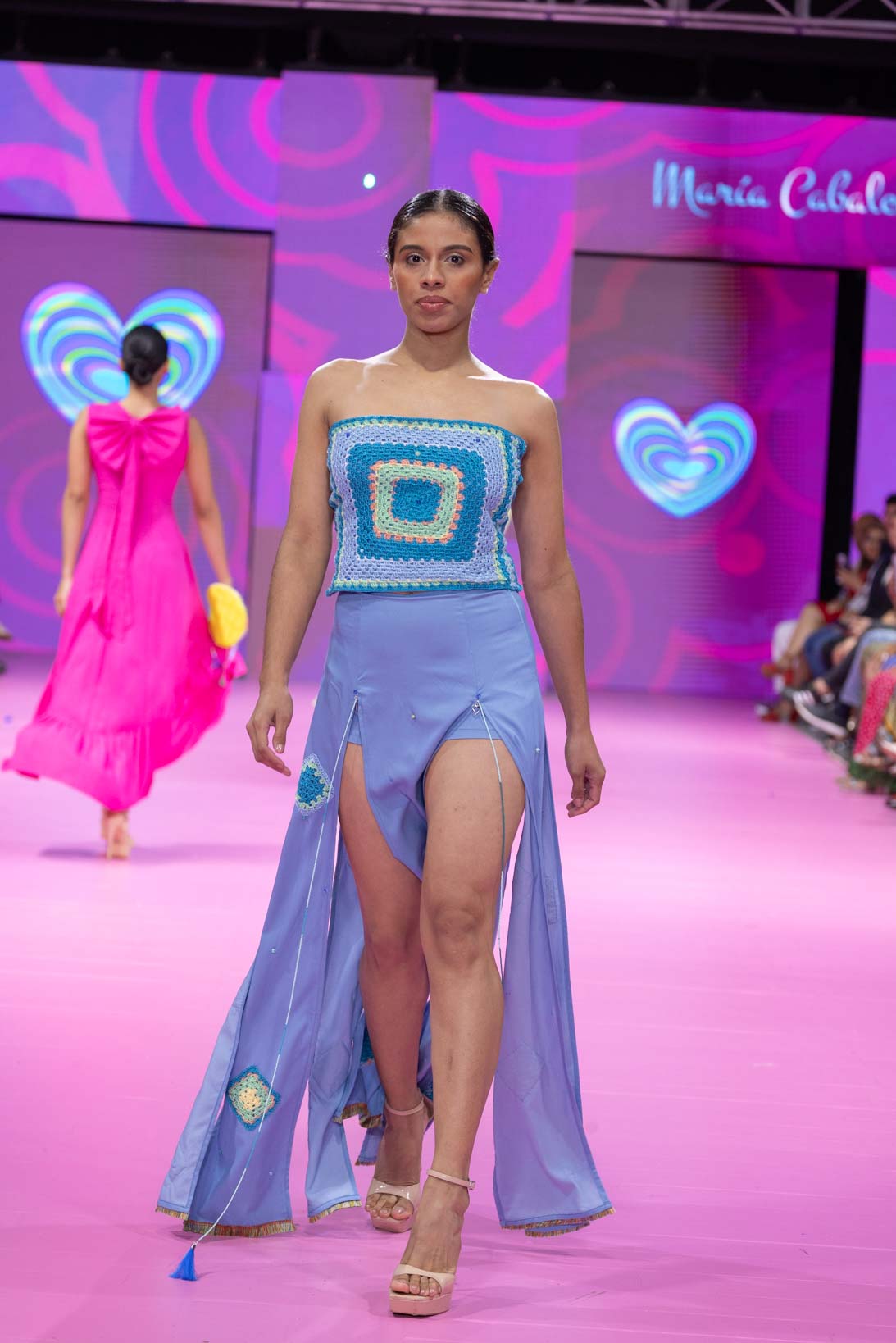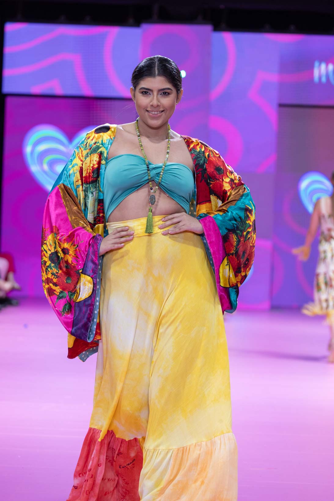 Annie Chajin, diseñadora de moda panameña, con su “ABC123” cerró los bloques de pasarela del sábado, colores vibrantes de la infancia destacaron, “porque mi hija está aprendiéndose el alfabeto y los números”.