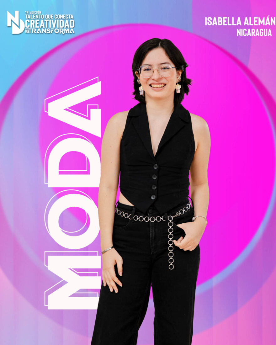 ISABELA ALEMÁN: Joven diseñadora que dio sus primeros pasos en la moda como estudiante del Técnico Especialista en Diseño y Comercialización de Moda de la Escuela Creativa de Nicaragua Diseña. Su estilo distintivo y compromiso con la sostenibilidad la han convertido, en poco tiempo, en un referente dentro de la plataforma Nicaragua Diseña y en la escena internacional.