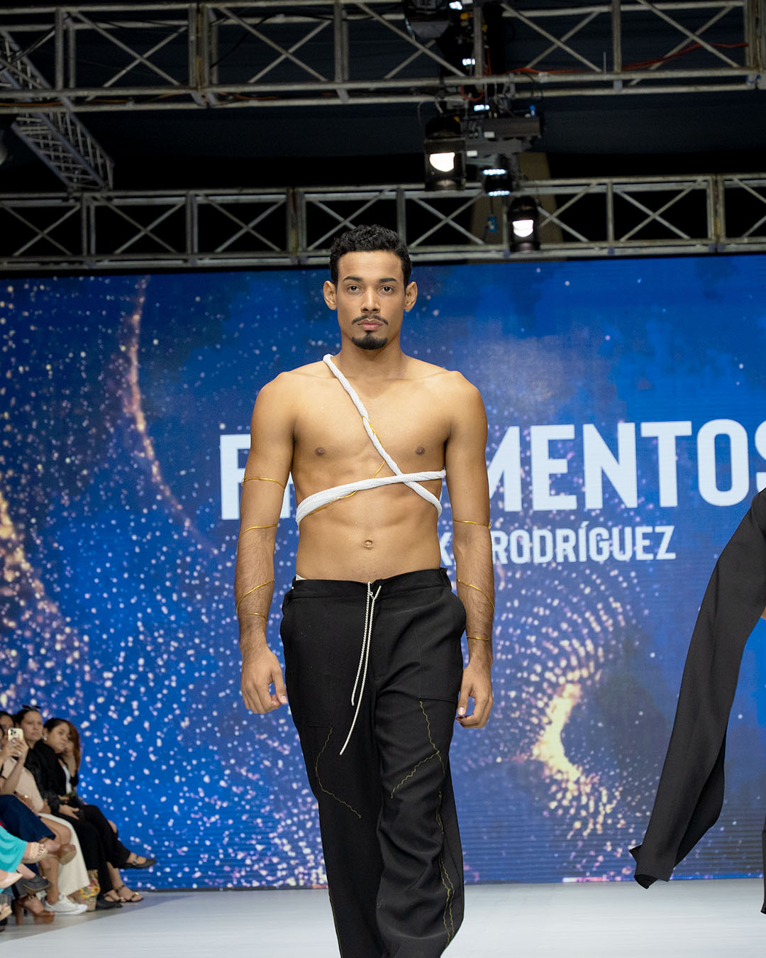 Su desfile destacó por la elegancia en los cortes, la armonía de texturas y una paleta de colores que evocó sensibilidad y fortaleza.