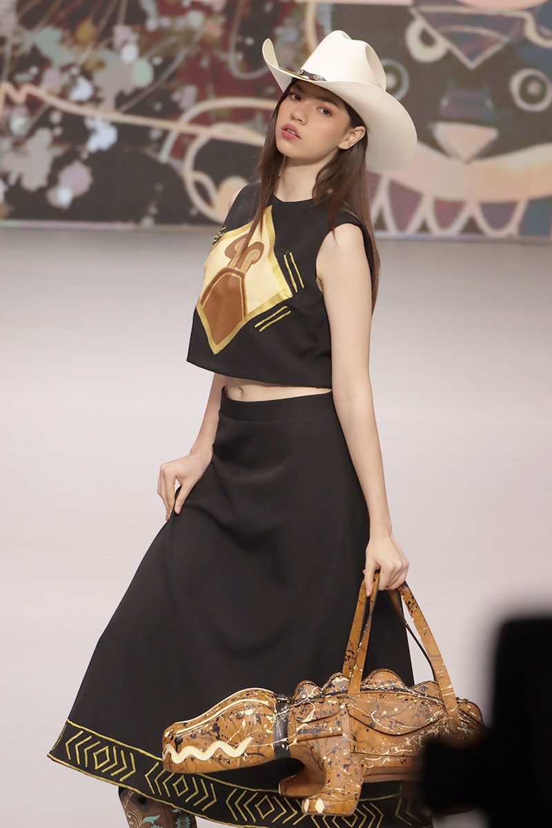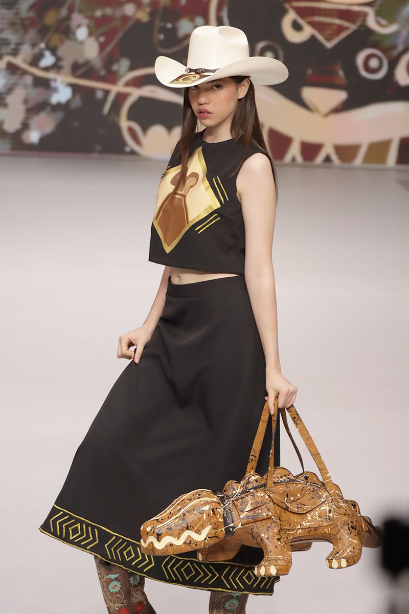 Su presentación destacó por la perfecta unión entre arte e indumentaria, explorando nuevas formas de expresión a través de la textura, el color y la composición.