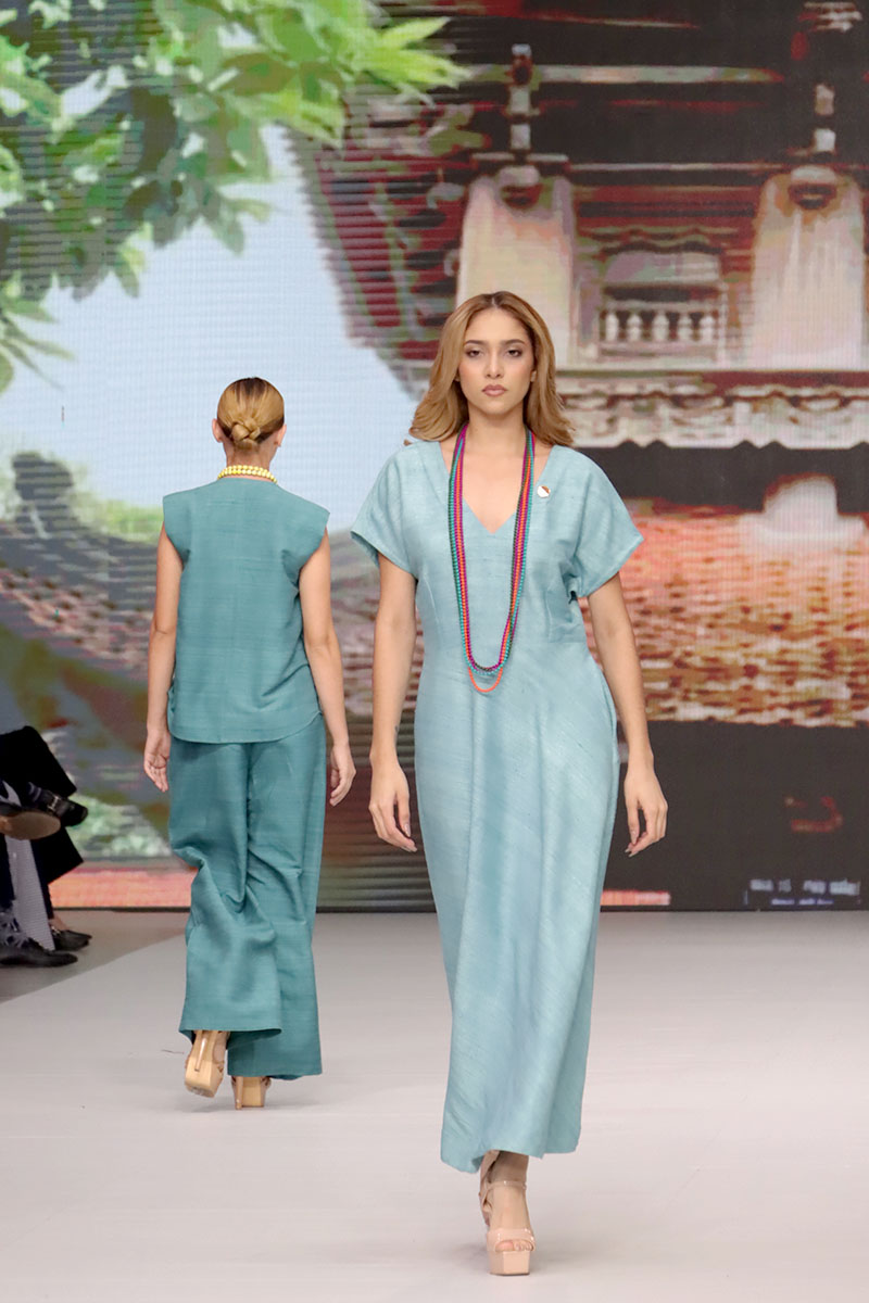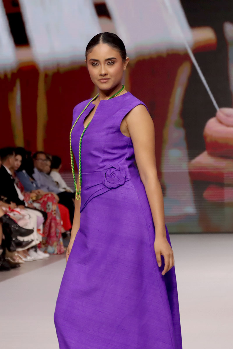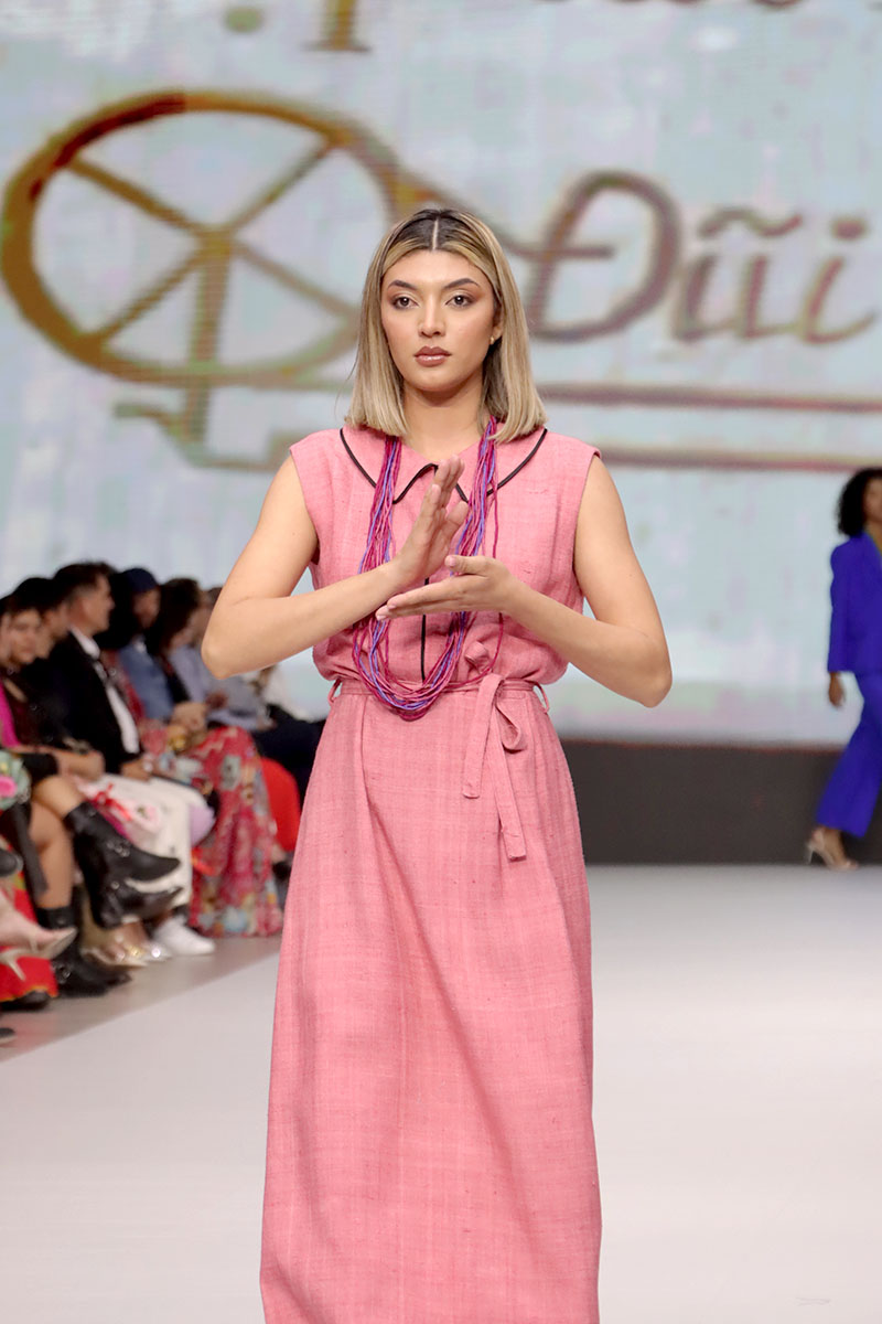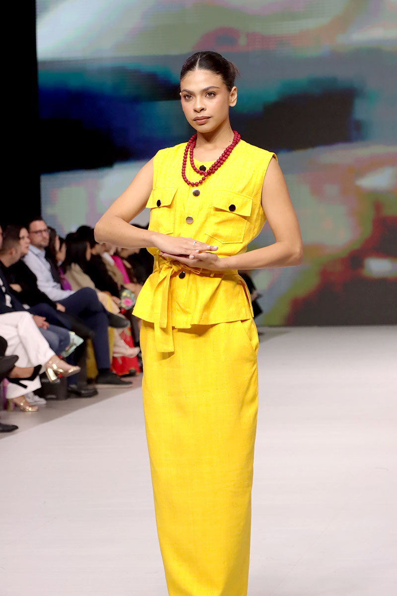 Cada diseño de Hanhsilk celebró el valor de la artesanía textil, combinando técnicas ancestrales con una visión contemporánea de la moda. La marca logró cautivar al público con su refinado equilibrio entre tradición y vanguardia, consolidando su presencia internacional y reafirmando el espíritu de Nicaragua Diseña como una plataforma que conecta el talento global.