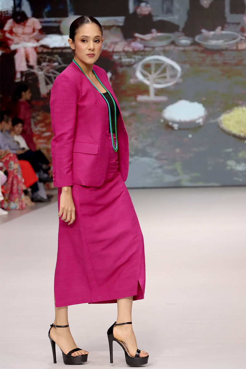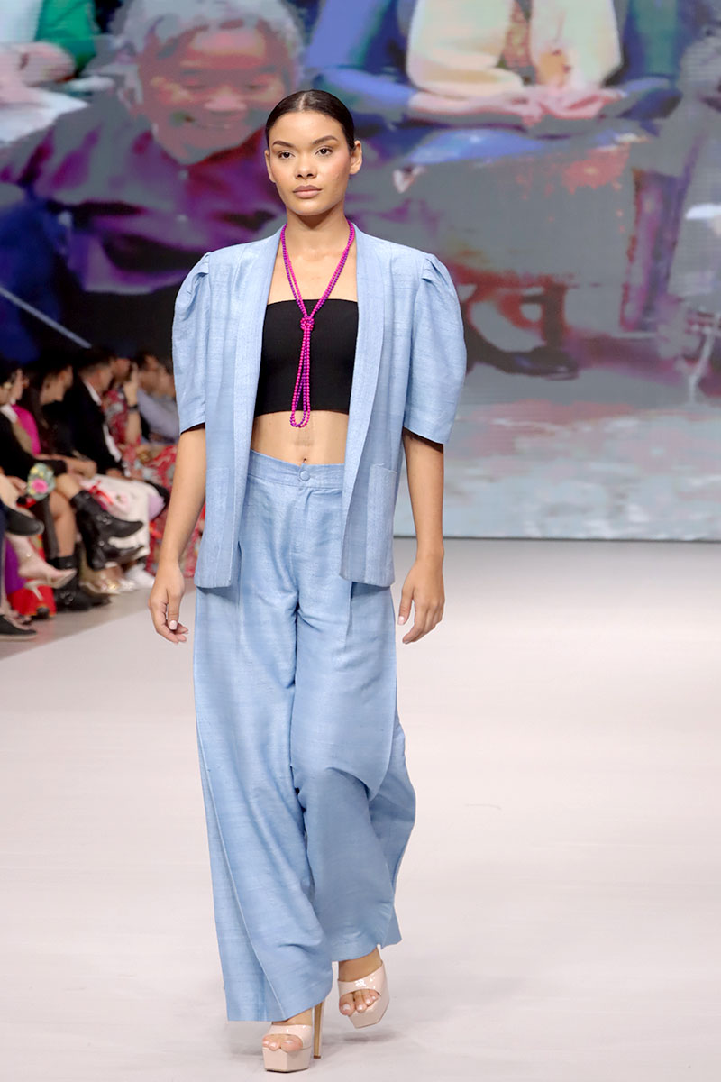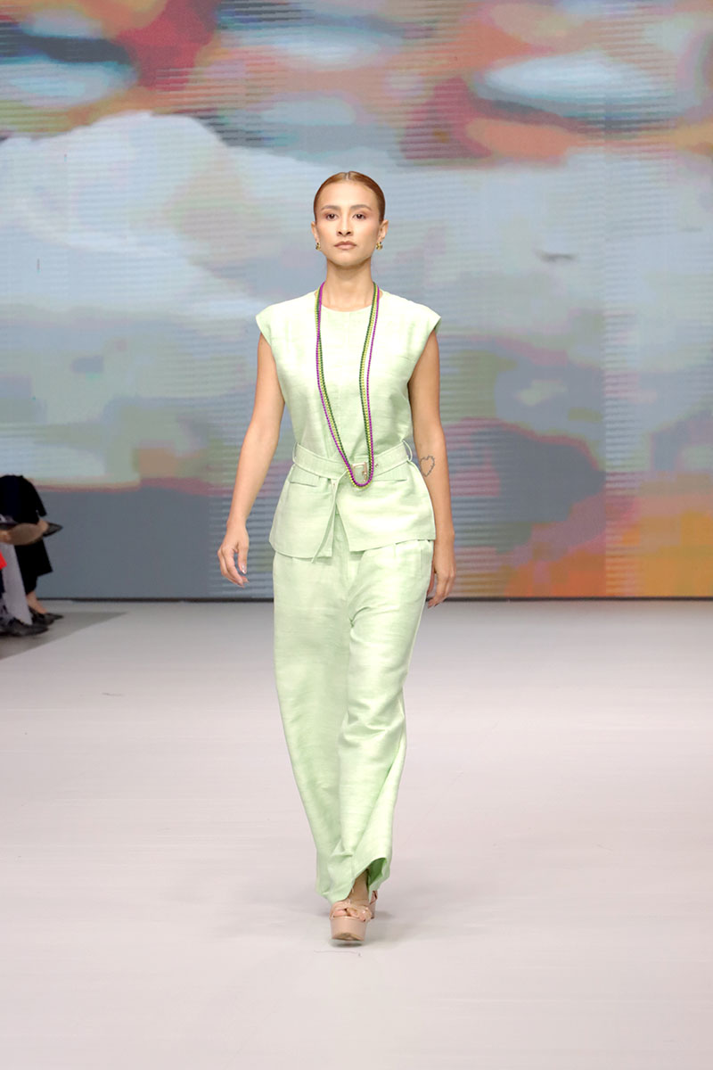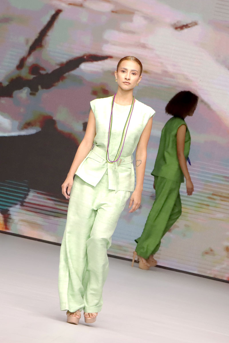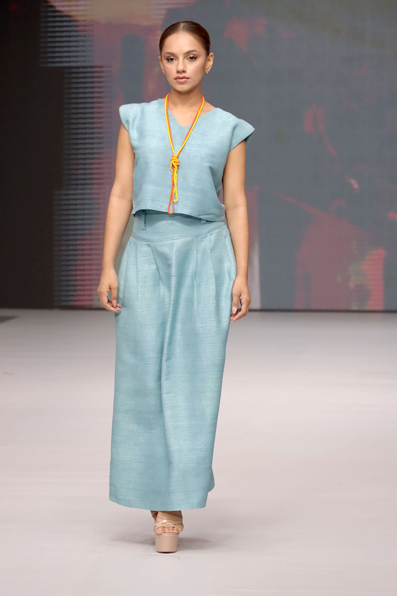 Cada diseño de Hanhsilk celebró el valor de la artesanía textil, combinando técnicas ancestrales con una visión contemporánea de la moda. La marca logró cautivar al público con su refinado equilibrio entre tradición y vanguardia, consolidando su presencia internacional y reafirmando el espíritu de Nicaragua Diseña como una plataforma que conecta el talento global.