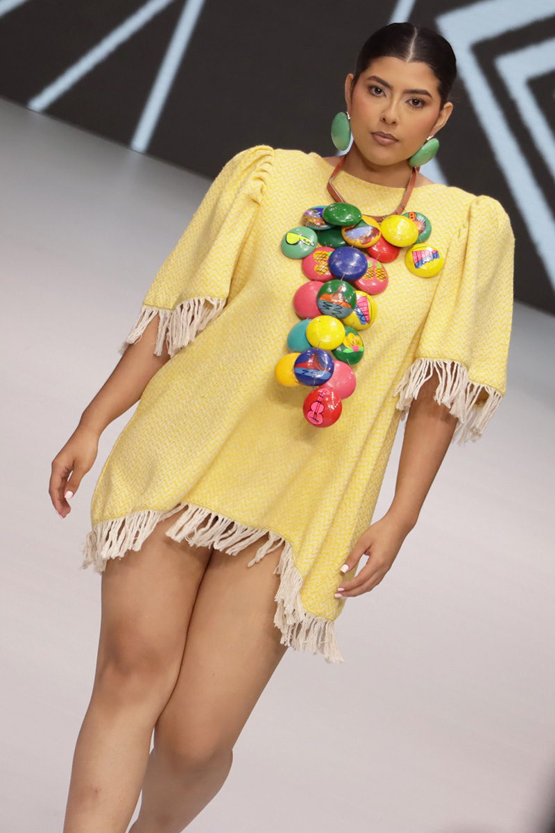 Con una trayectoria que incluye su debut en pasarela en 2022 y participación en los stands de Expo Feria, Vielka ha consolidado su presencia dentro del diseño nacional, mostrando un crecimiento constante y una visión innovadora.